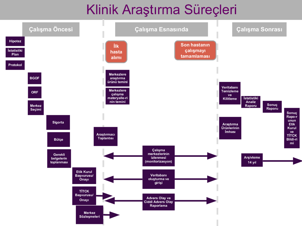 Klinik ve Gözlemsel çalışmaların tasarımından tamamlanmasına kadar gerekli olan tüm süreçler, evrensel ve yerel yasal düzenlemelere göre planlanarak ekibimiz tarafından yürütülmektedir.